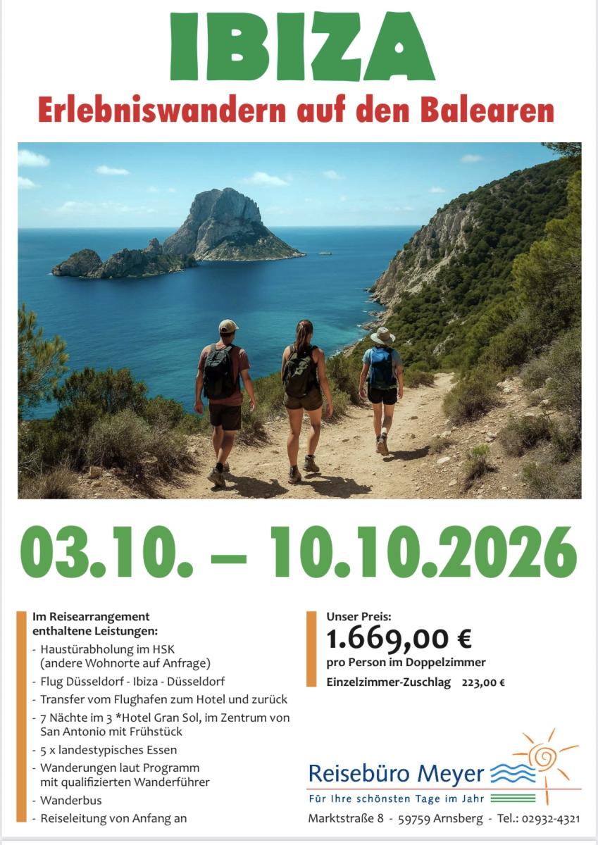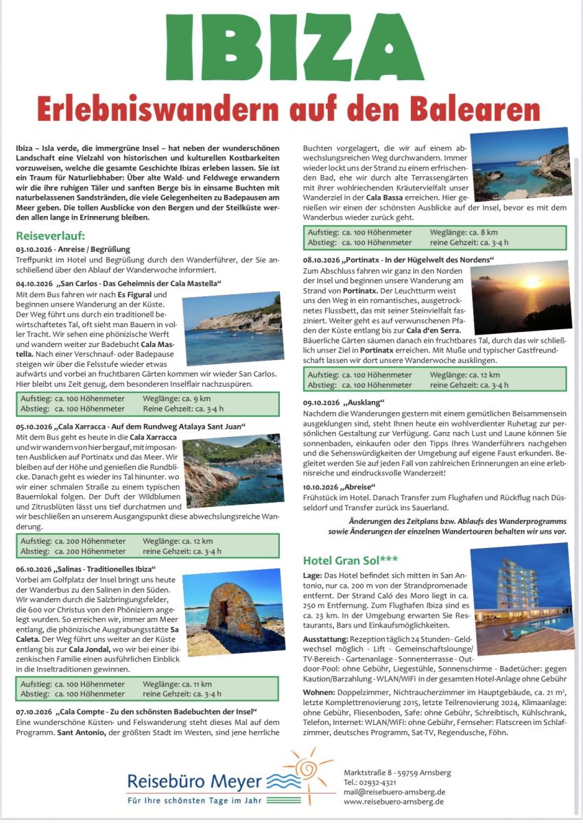 8-tägige Reise vom 10.10 - 17.10.26 im Hotel Gran Sol mit geführten Wanderungen.